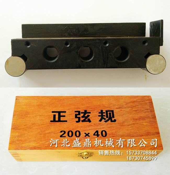 正弦規(guī)是根據正弦原理設計的是用于精密測量角度的計量器具。正弦規(guī)測量角度是以利用直角三角形的正弦函數為基礎的。通常用來測量帶有錐度或角度的零件。因為它的測量結果,是通過直三角形的正弦關系來計算的,所以被稱為正弦規(guī)。它主要由一準確鋼制長方體—主體和固定在其兩端的兩個相同直徑的鋼圓柱體組成。其兩個圓柱體的中心距要求很準確,兩圓柱的軸心線距離L一般為100毫米或200毫米兩種。工作的時候,兩圓柱軸線與主體嚴格平衡,而且與主體相切。正弦規(guī)一般是用來測量小于45°的角度,在測量小于30°的角度時,準確度可達3″~5″。